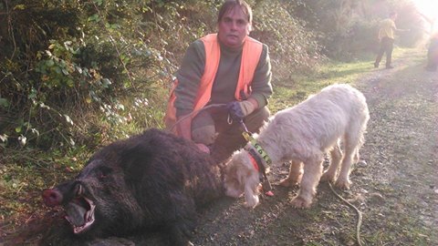 Angel Segarra y el espectacular jabali abatido
